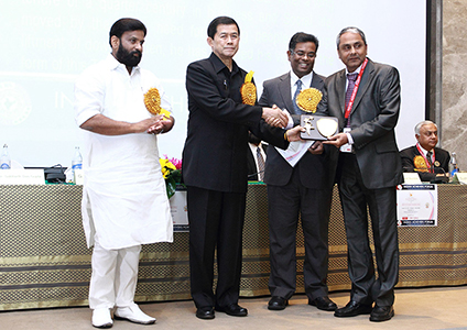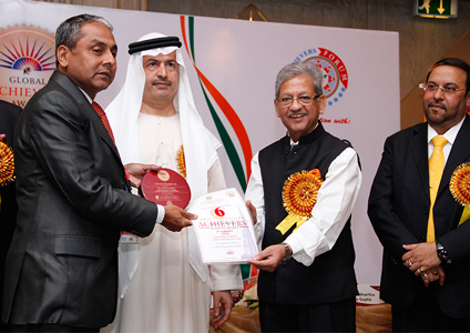 Corporate Leadership Award, March 16 -2013 - Dubai. His Highness Sheikh Abdulla Bin Zyad Al Nahyam, the Chief of Gulf Airways and the former Ambassador to USA presented the Award. Dr. BR Shetty, Shri. Sunil Shastri and other dignitaries are on the dais.