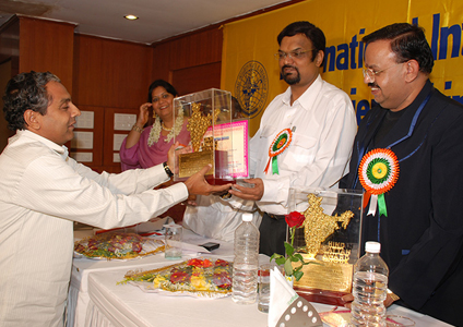 Hind Ratan Award, Aug 20 - 2008 - Bangalore, India. The Director of Doordharshan presented the Award. Industrialist Dr. K T N Murthy is on the dais.