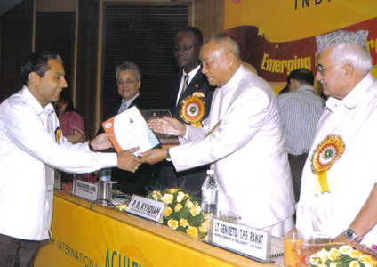 Rashtriya Udyog Rattan Award, June 26 -2008 – New Delhi, India. Hon`ble Union Minister Shri. P R. Kyndiah presented the Award. His Excellency the Deputy High Commissioner of Ghana is on the dais along with other dignitaries.